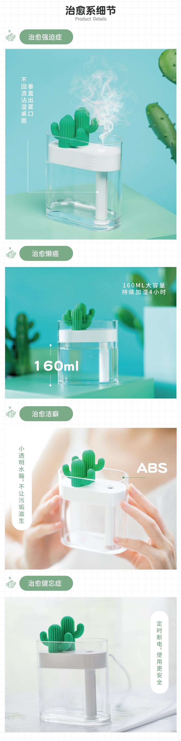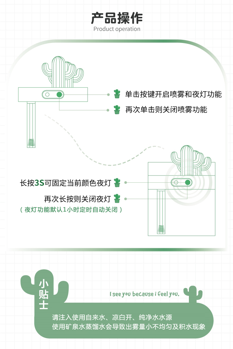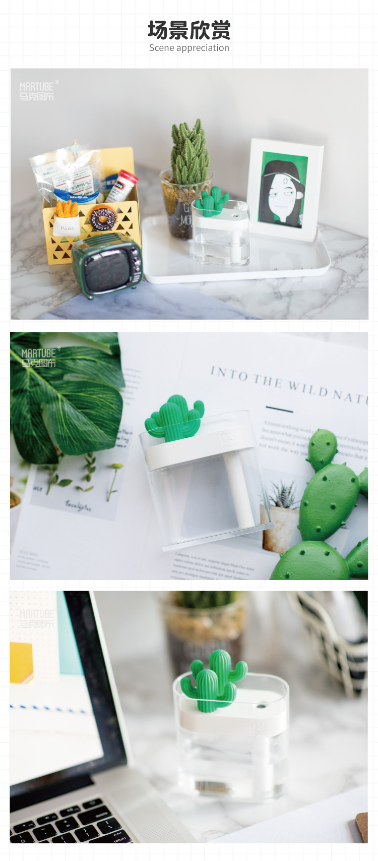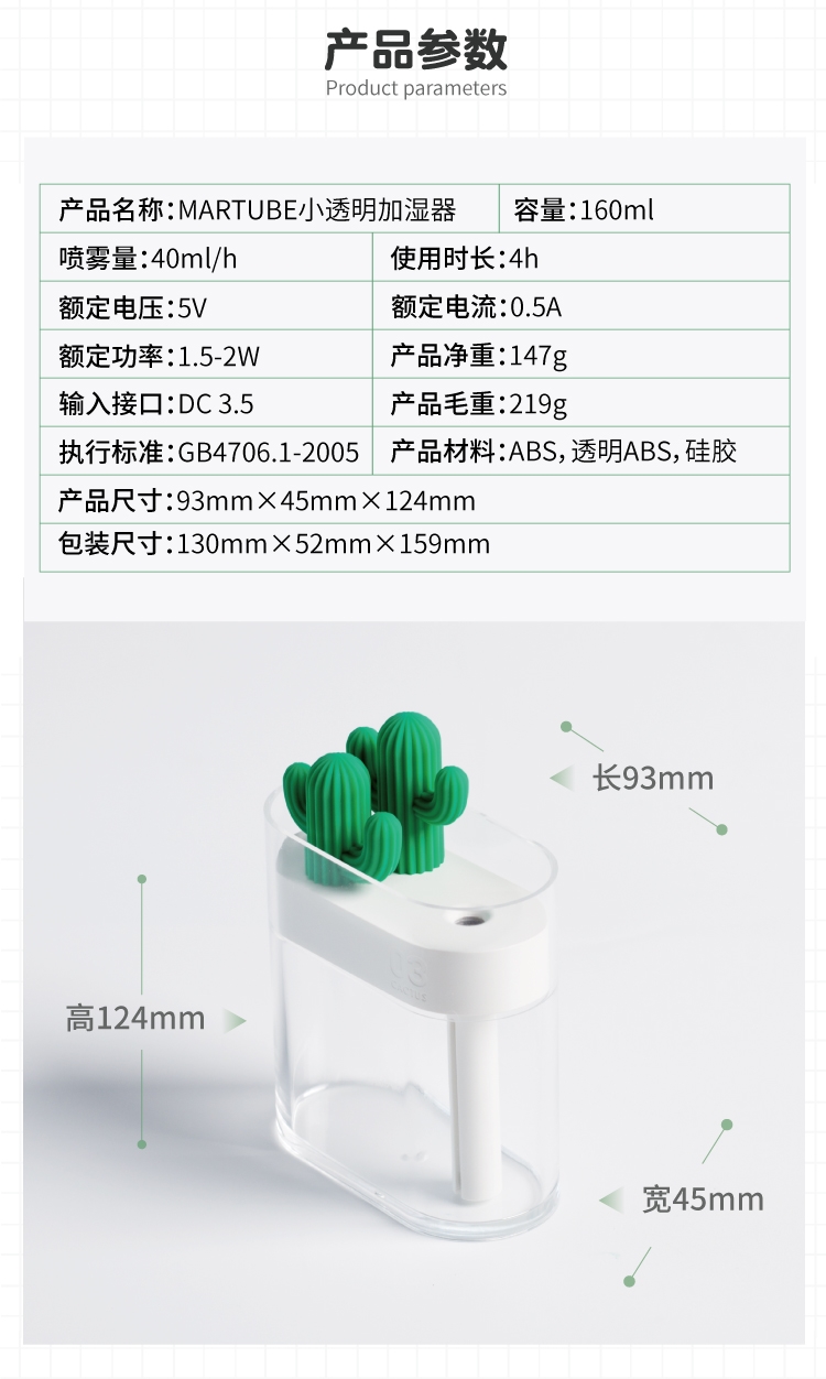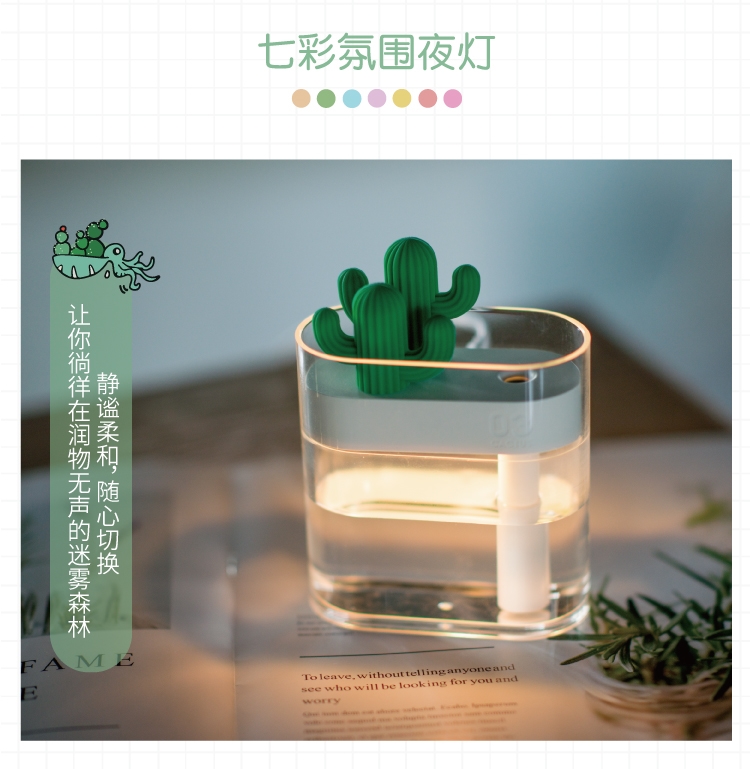马克图布小透明加湿器办公家用桌面型仙人掌卧室空调空气喷雾静音