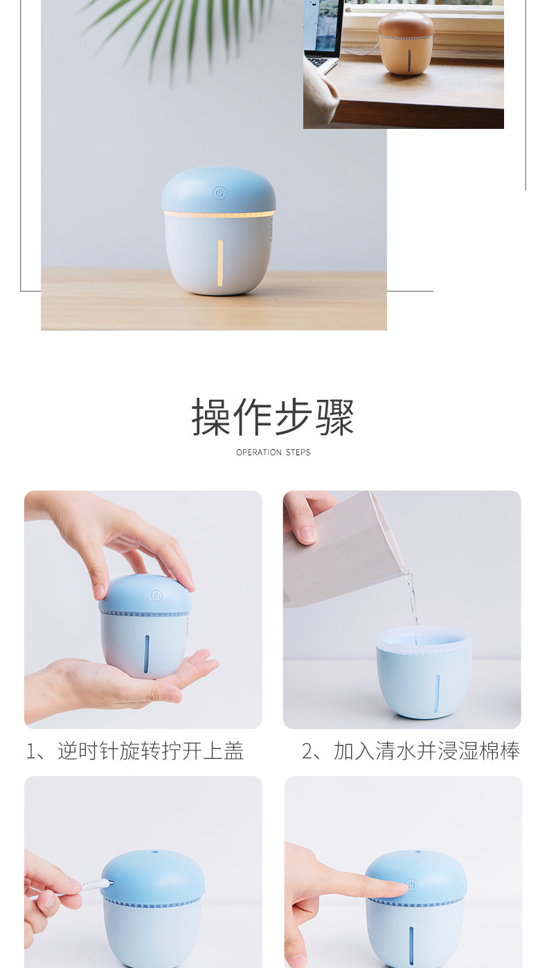 质量特别好,还特别便携,特别喜欢。下次还会光临。小巧实惠,不过如果买200ml的连续喷大概三个半小时的样子就得换水了加湿器非常可爱,用着舒服,卖家服务很好,满意海星,速度挺快的,就是和想的3有点不一样比想象中的小,但是外形还挺可爱的,不漏水,就是不知道怎么一股中药味。加湿器迷你加可爱,颜色温馨,比想像的要好用,四小时自动关闭功能,出雾量可以,准备拿去单位用的,单位的柜机空调正好对着我。买了200ml迷你的加湿器,雾气足,没有声音,还送了一根吸水棒,性价比不错!这个买来放在公司用,准备再买一个放家里床头用。喷出来的蒸汽周边没有水,而且小巧方便携带,就是刚开始少了个弹簧导致无法使用,耐心跟我讲,最后是我发现少了个弹簧,东西也好用!!容量也大,出雾口还有贴了特别注意的,标有最高水位线。 在工作室自己的小隔板里正好 迷你,适合放在办公桌上,主要是便宜实惠嘛,和图片没有色差,小小的也不占地方,P4.12