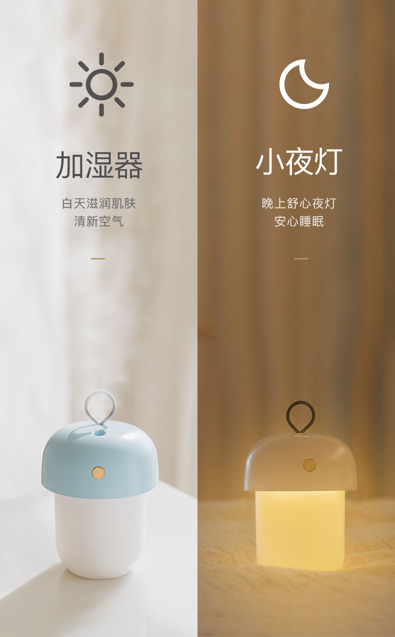 宝贝颜色和款式是自己喜欢的满意。买了放在宿舍用 北方是真der干呐!学生党表示这个性价比 喷出来的是细雾 因为小巧 方便携带 平时带出门也OK~这款加湿器不仅仅外观漂亮,出雾气细膩,加湿效果很好。非常好,家里卧室必备 超级赞没有什么声,很好,性价比很高。