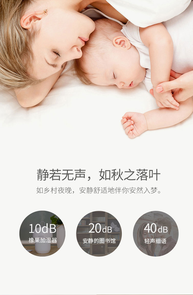 美观实用,跑出的气雾很细腻,主要静音完全不会影响休息,性价比高!由于家里有暖气,前段时间没用时每天早晨起来喉咙干的疼,现在有了它而且完全静音模式一觉睡到自然醒,喉咙再也不疼了,水雾特别细腻还美观,本人觉得性价比很高,值得购买!
