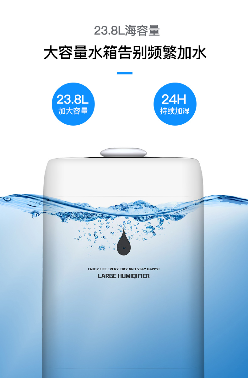 水的容量很大,我家整天整夜都开着空调加湿器开到最大都不用加水,冬天夏天空调房睡觉醒来也不会觉得喉咙干燥,难受。这款加湿器好用价格也是很合理,推荐想买的朋友可以下手放心购买的。在这特别提一下客服服务态度太好了必须点个赞!祝店家生意兴荣!财源滚滚来!