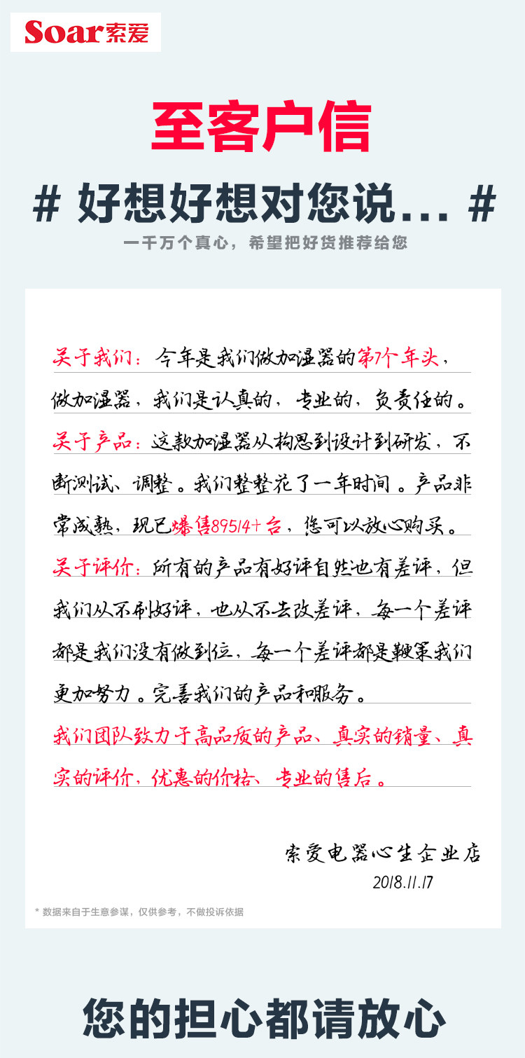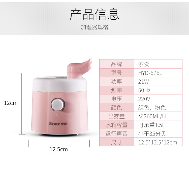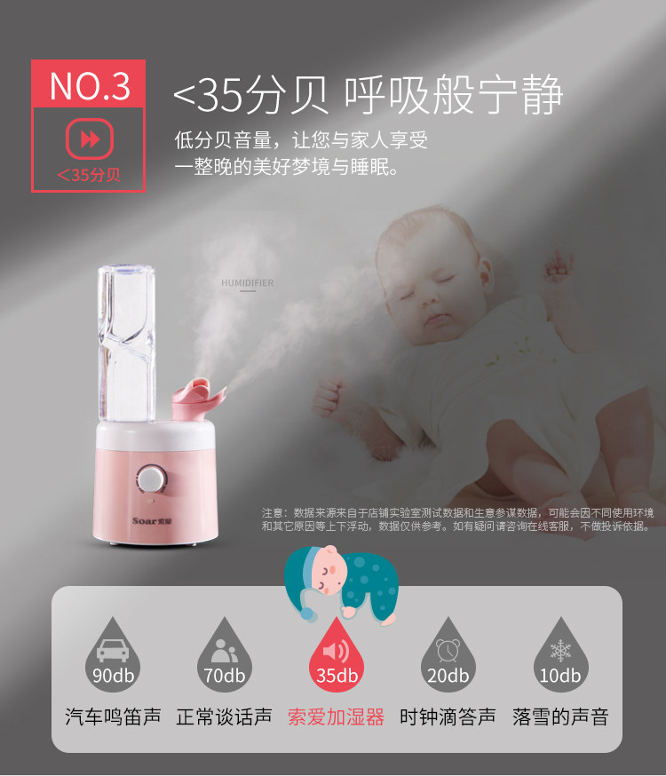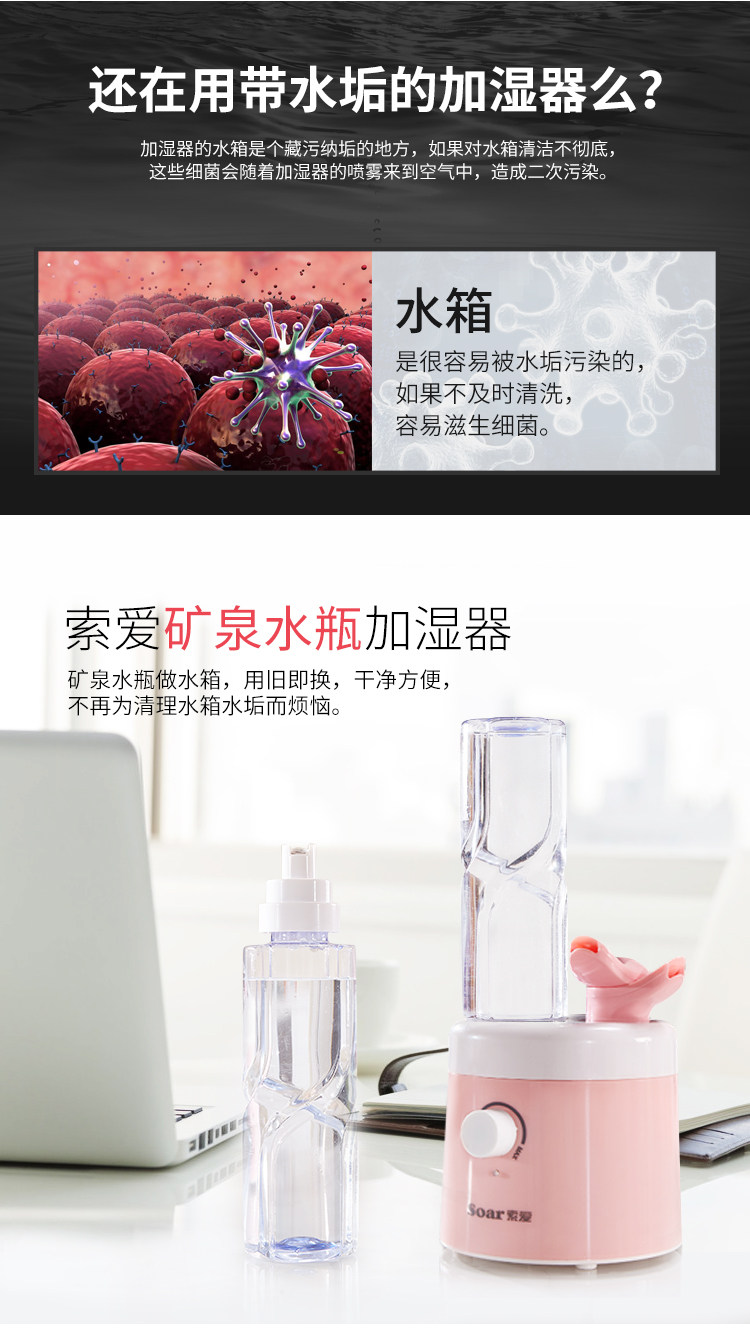 [索爱电器心生企业店加湿器]索爱加湿器迷你家用静音卧室办公室桌面月销量466件仅售59.9元