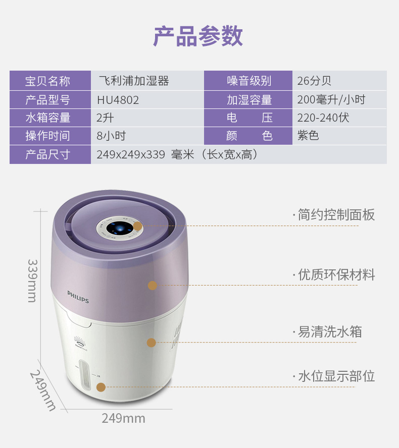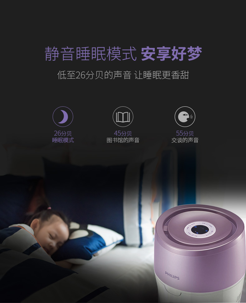 基本静音,因为买了钢琴,屋子里特别干,所以买了加湿器,真不错