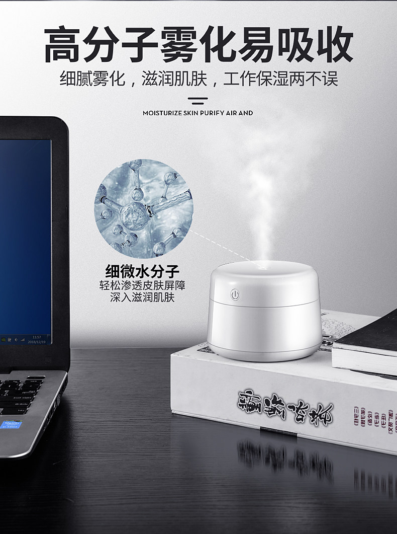 (57)[鱼米士数码专营店USB加湿器]倍思 加湿器家用静音卧室小型大容量迷月销量99件仅售53元
