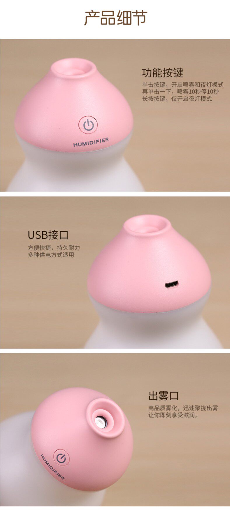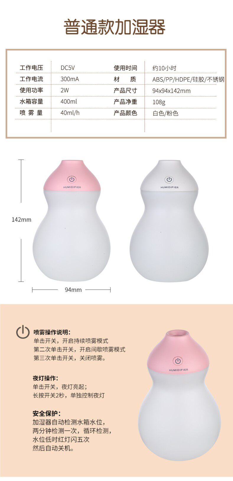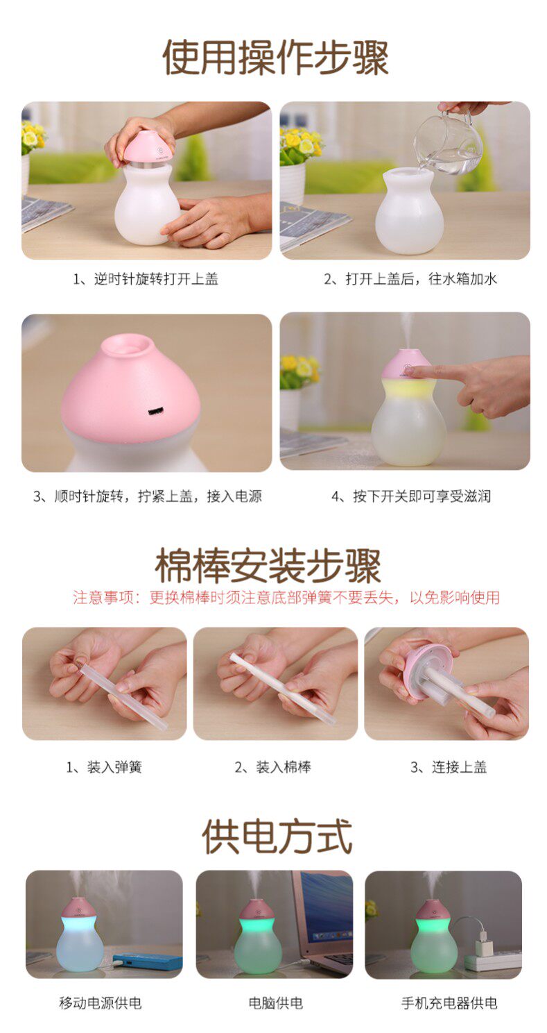本链接为葫芦加湿器普通款,不能充电,必须接电源使用, 如果需要充电款,请拍充电款链接