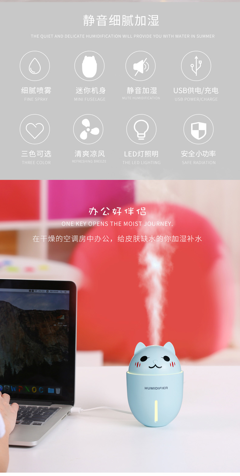 (64)[gotein旗舰店USB加湿器]充电款usb无线加湿器仙人掌便携式喷月销量99件仅售58元