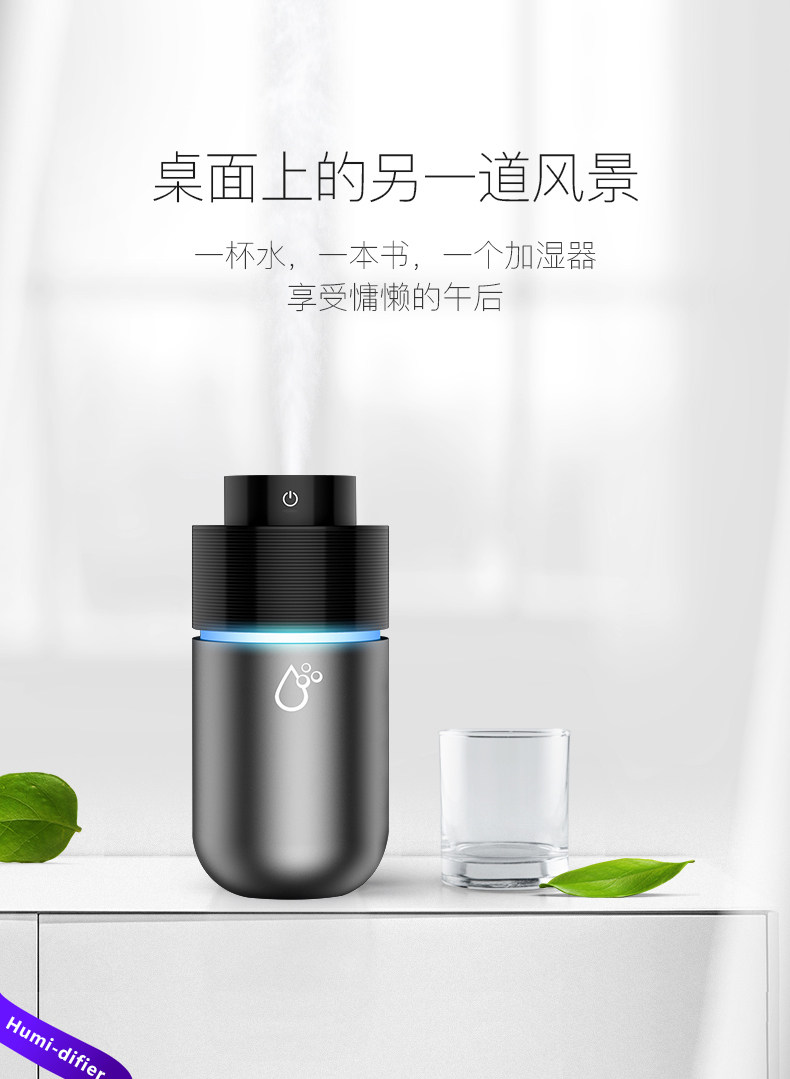 空气干燥,加湿器真的是必备产品,用起来真的很不错。外观精致小巧,放在桌子上也不占什么空间。容量挺大的,加满水可以用一整天呢,雾化很细腻也很大,而且声音小,不影响休息和工作,用着非常方便,总的来说还是很满意的