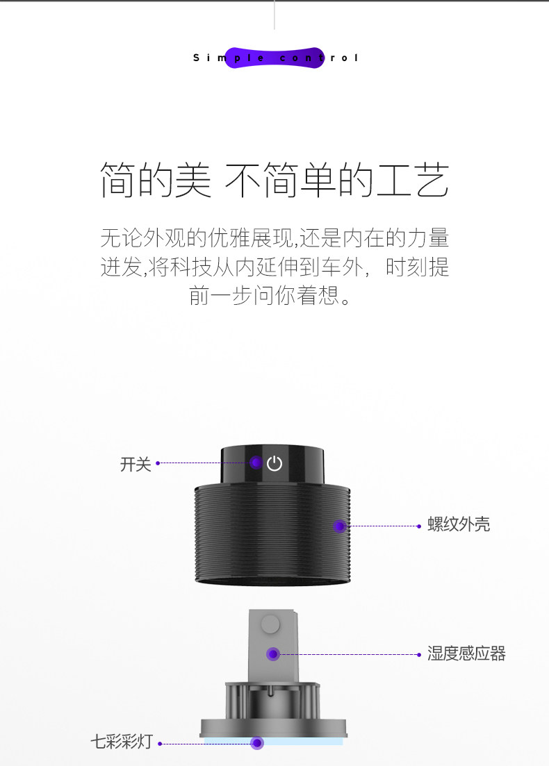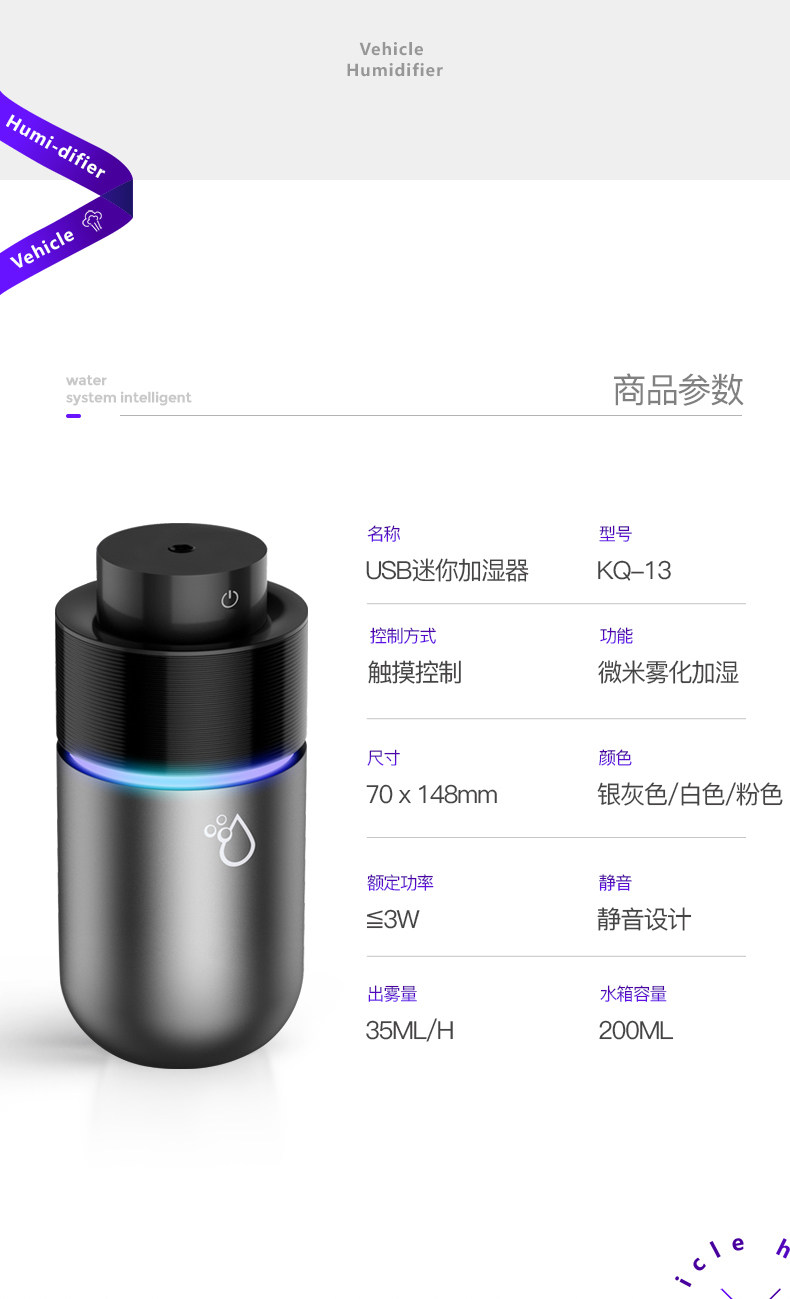 放在车里刚刚好,很小巧,不占地方,而且白色的特好看,开机还有彩灯,以后车里就不会干燥了,很不错。喜欢