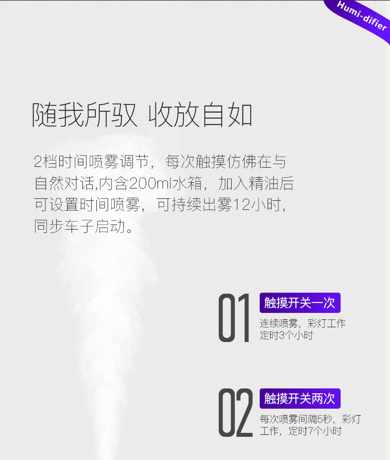 加湿器的喷雾均匀,气味清香,放车里不占空间!