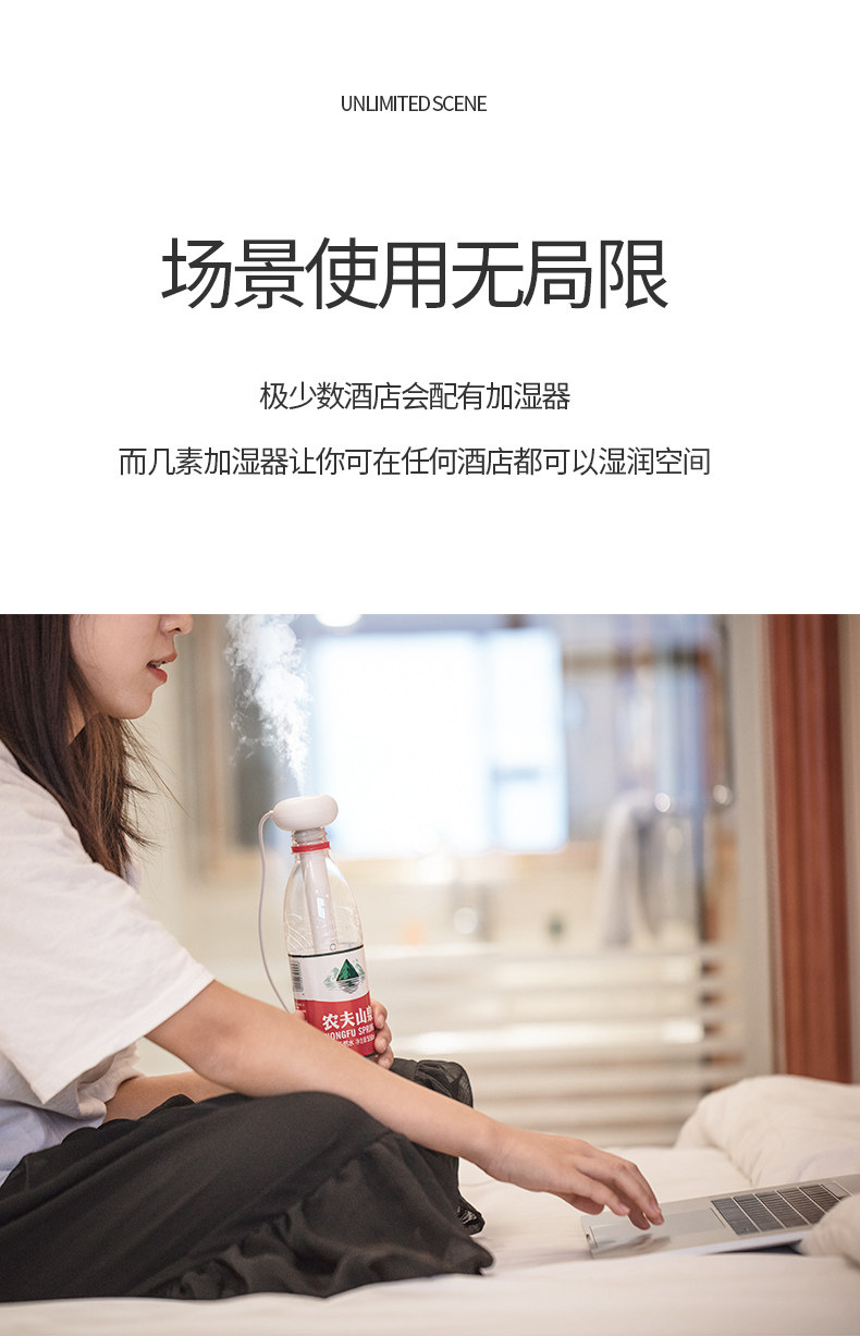 这个简单方便,很静音,没有声音的,加湿器雾气大,放大点房间雾气正好合适,特别好用,物流速度也杠杠的,设计很特别,很新奇,用瓶子之类的装水,把加湿器放进去都可以使用,很方便。