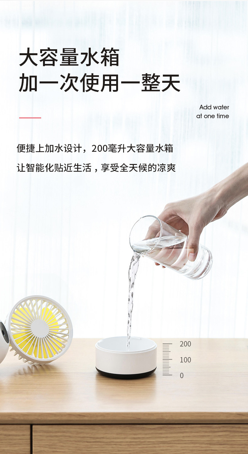 首先小风扇的颜值太可爱了,看中它主要觉得可以加湿,放在办公室桌上也不占地方,加上水可以用一整天,噪音也不大,用着很方便!