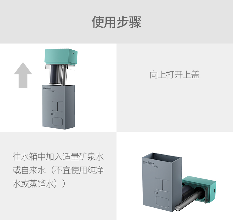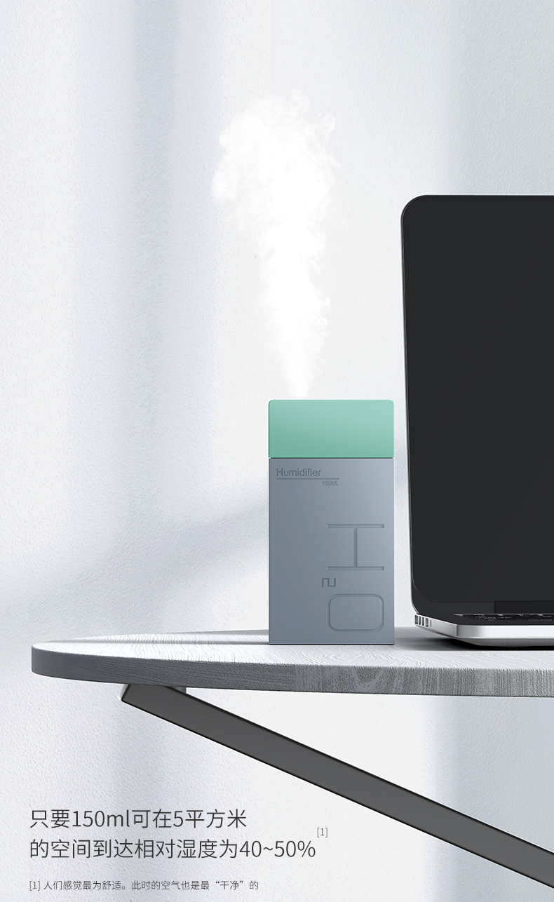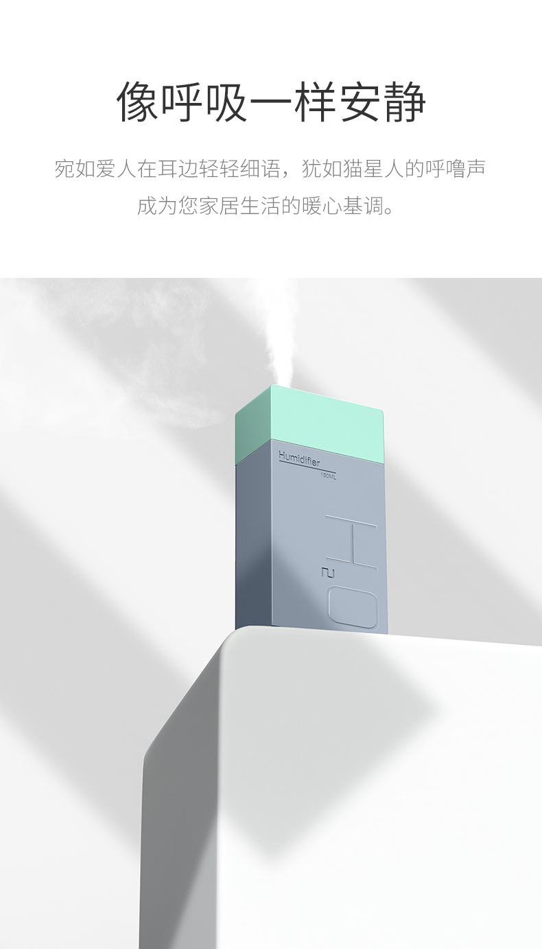 买它难道不是就是冲着颜值去的吗? 意料之中的好看【化院的女人绝不服输.jpg 工业风? 水泥灰+雾霾蓝 然后开关也很酷,手指在开关上放一会,蓝灯亮了就开了 还是方便且有趣的 喷出来的雾没有别的小型加湿器那么高【我室友 但我觉得够用啊【就是离得近鼻子里都是水了_(:_」∠)_ 目前体验极好,以后想起来可以再追评一下