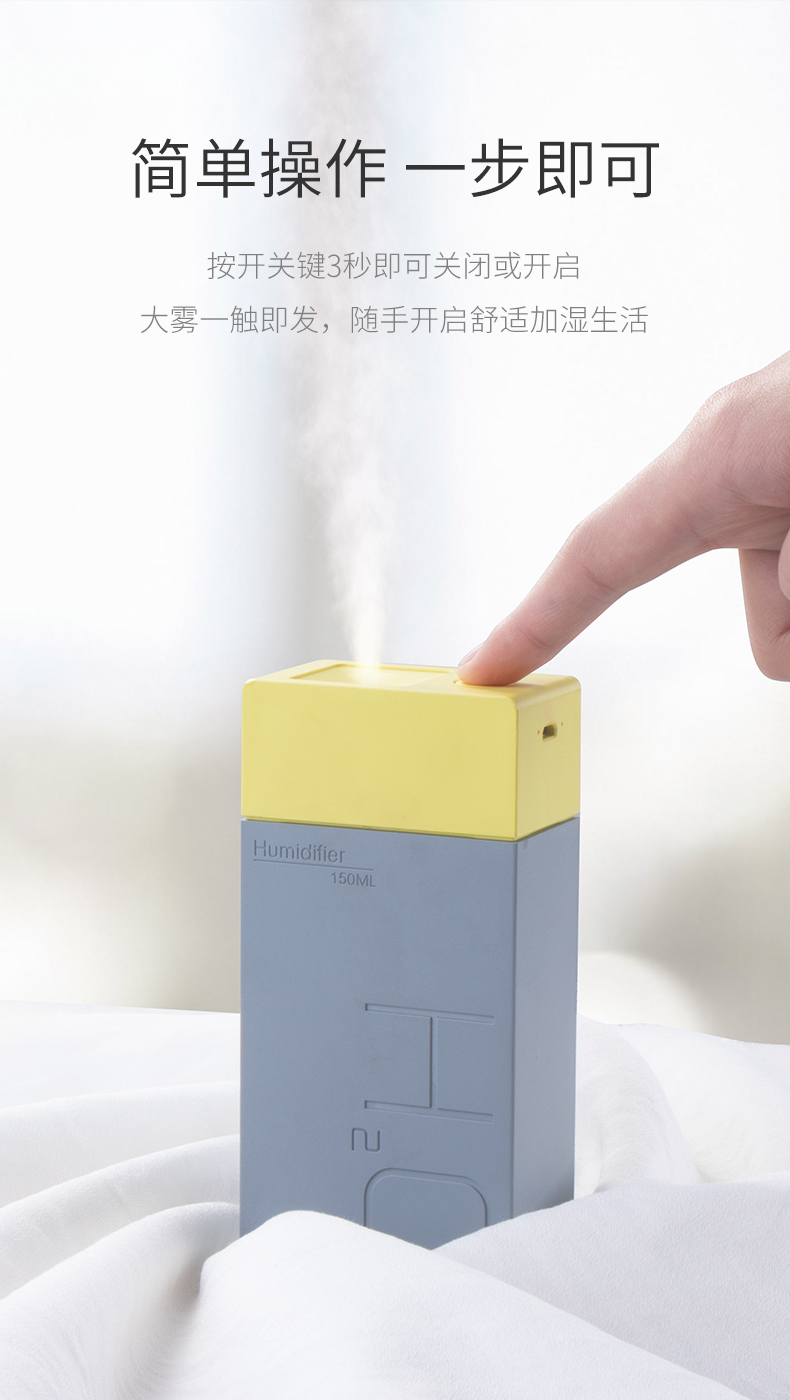 收到就立马装水试了,开关也是感应,很方便,小小的也很便捷,买到就是赚到,喷的雾量也还可以,这可能是我买的最好的一个加湿器了,推荐推荐!!