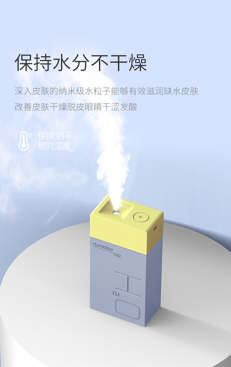 出雾挺大的,而且储水槽容量也大,冬天跟夏天空调房里很实用,体积又小,最重要的是无线!可以随便移动随处放!要注意的是盖子是盖不紧的会漏水,不适合随身携带,但是不影响在家里放着用。唯一的遗憾是想要的蓝色没货了,只能买黄色…也还挺好看的吧