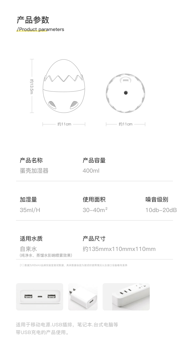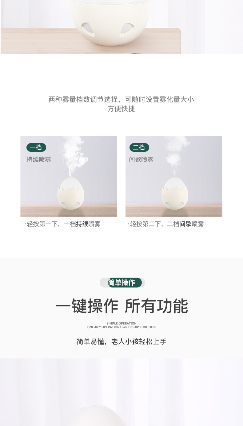 加湿器收到了,外观很好看,像个蛋蛋,很轻方便携带出门,操作也很简单,必须好评!!