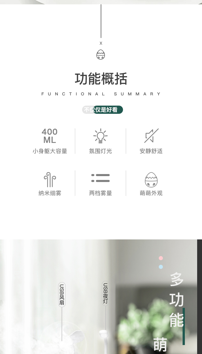 造型可爱的加湿器,气雾细腻,没有噪音,送的小夜灯非常亮,小风扇微风细细,值得购买