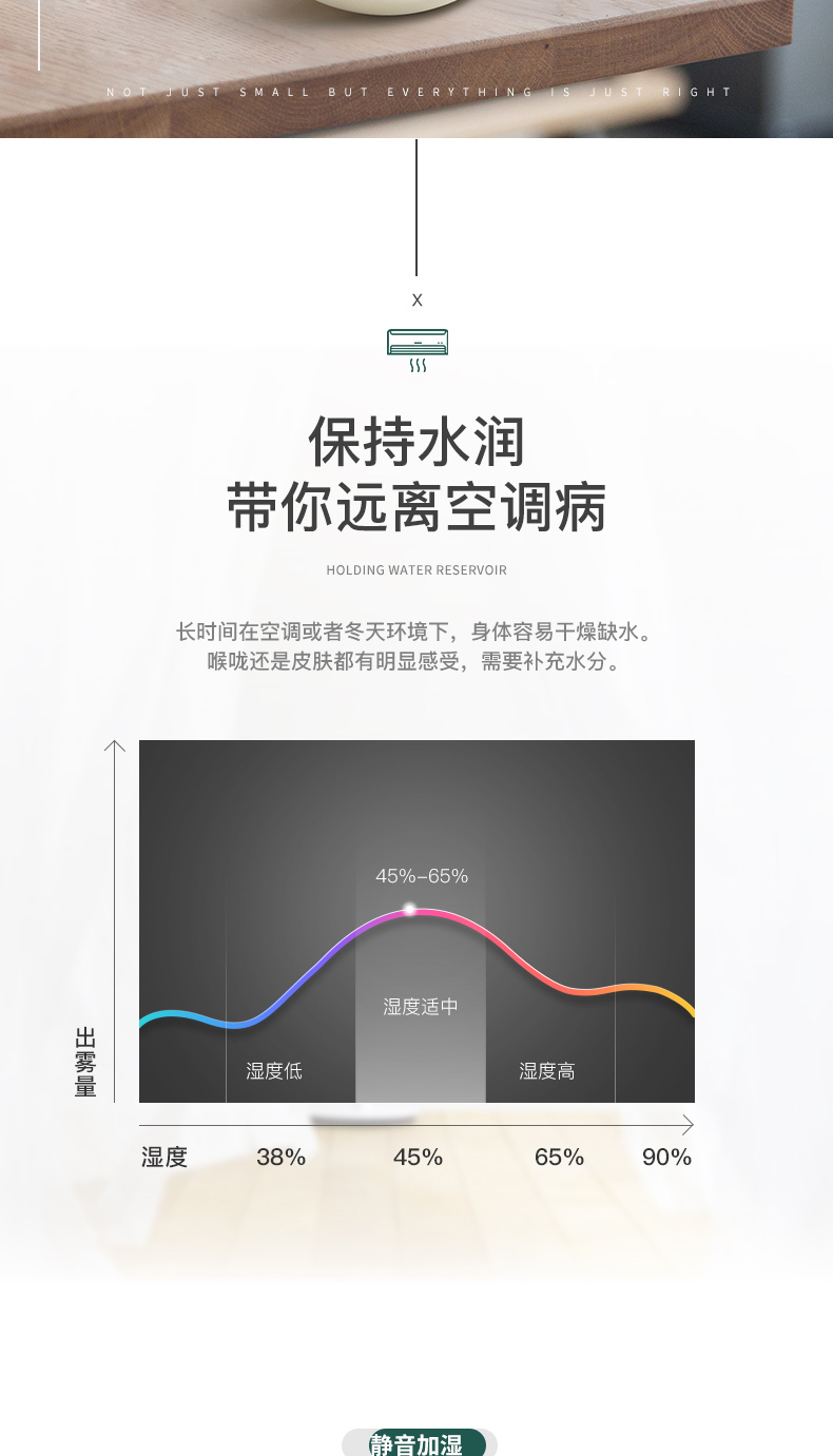 1.雾气蛮大的2.侧倒没有漏水,可以晚上放床边啦3.可以一晚上都加湿,符合我的期待啦啦