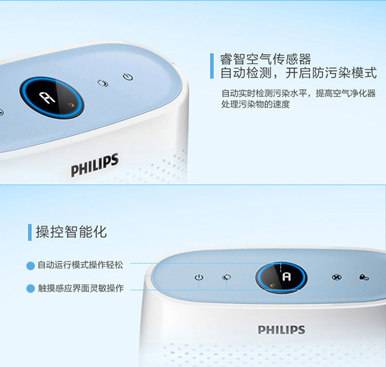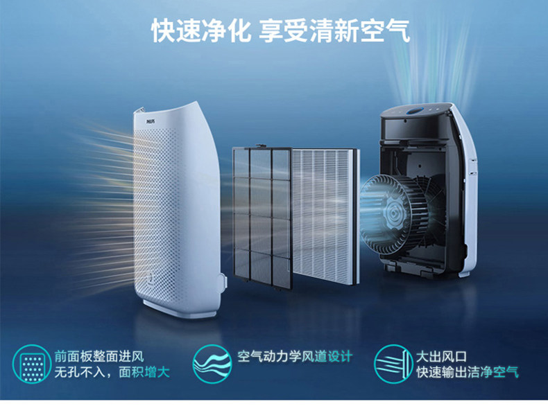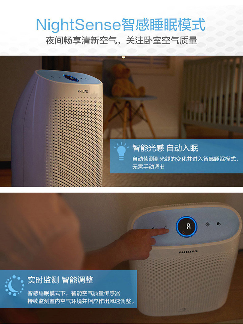 飞利浦空气净化器家用卧室除甲醛雾霾杀菌二手烟PM2.5智能净化器
