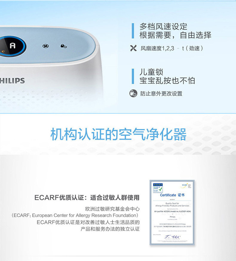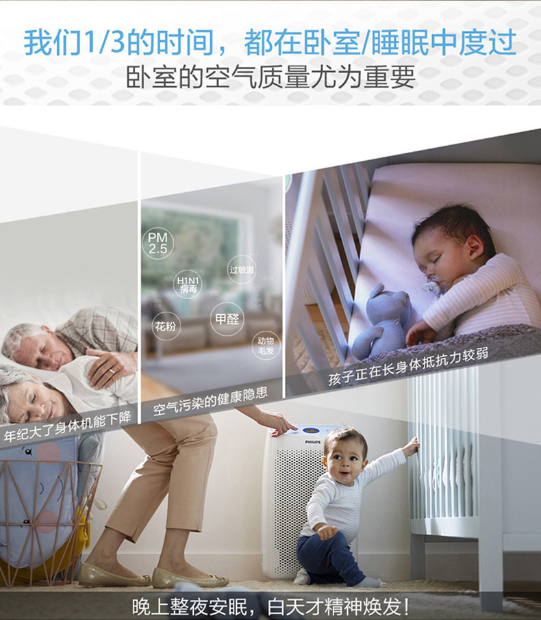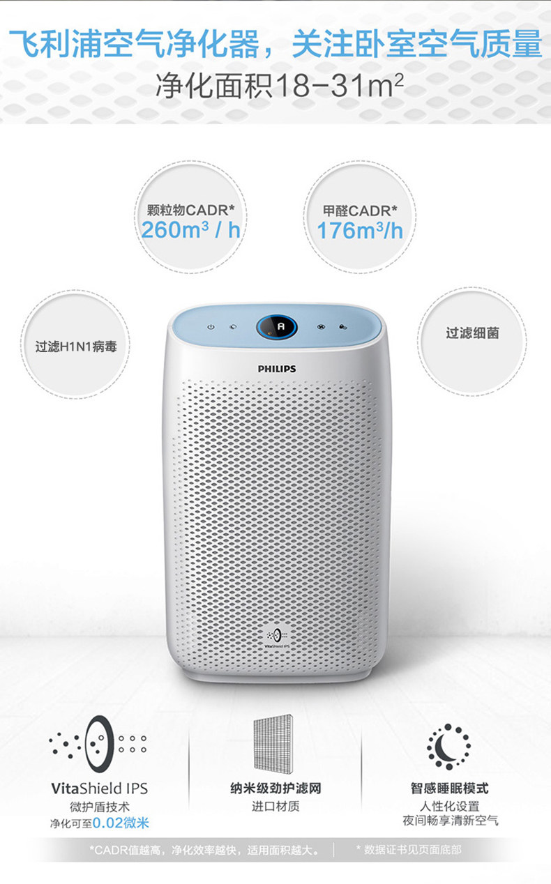 [京创电器专营店空气净化,氧吧]飞利浦空气净化器家用卧室除甲醛雾霾杀月销量1件仅售999元