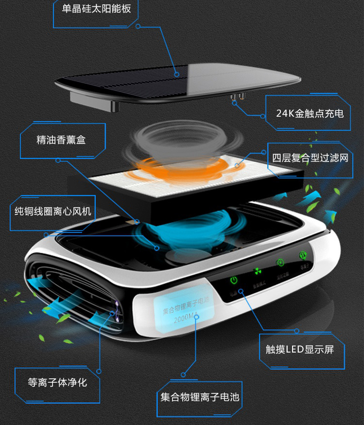 一眼就相中了这家的这个宝贝,是买来给老爸用的,它这个充电很方便,不仅能用太阳能还可以用电源线充,像我爸爸这个年纪的人用起来很方便,特别给我爸选了这个颜色的,大大方方,简简单单,和他车里的内饰颜色特别的搭配,爸爸说现在空气质量这么差,有一个这个很有必要的,可以把不干净的味道去除掉,他很喜欢夸我买的好,所以真的很满意这个净化器