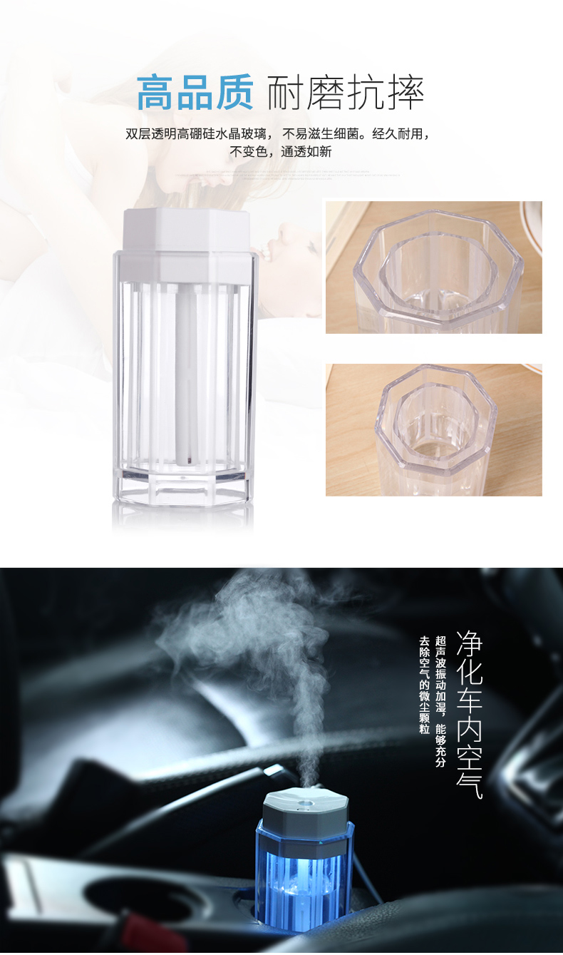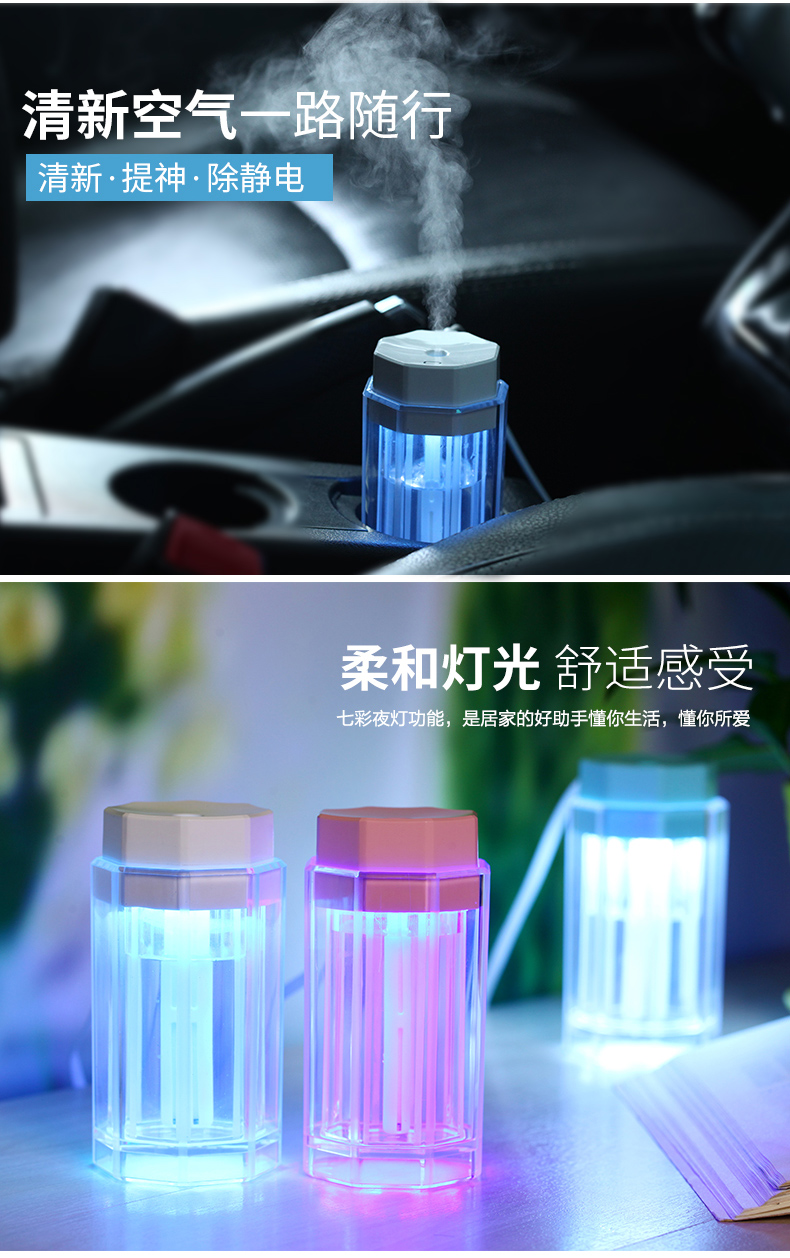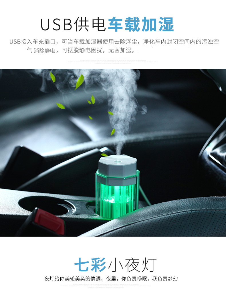 七彩玲珑车载加湿器空气汽车净化器喷雾活性炭车内负离子消除静电
