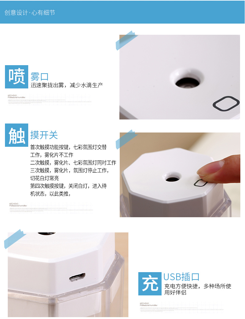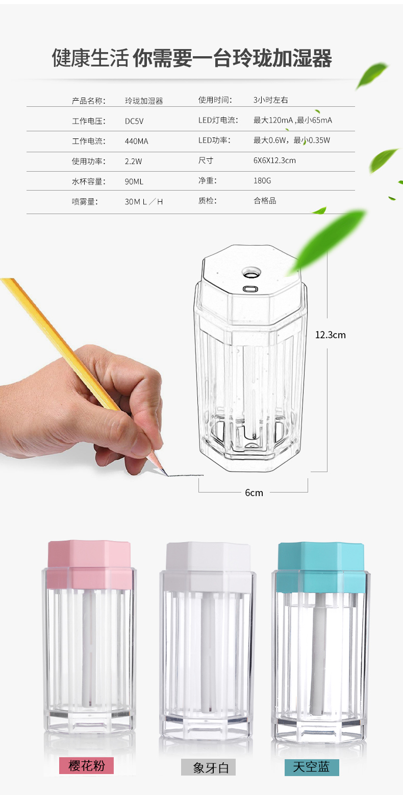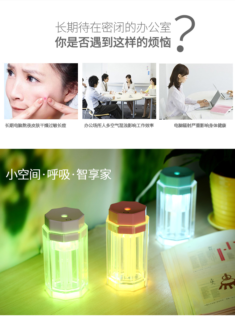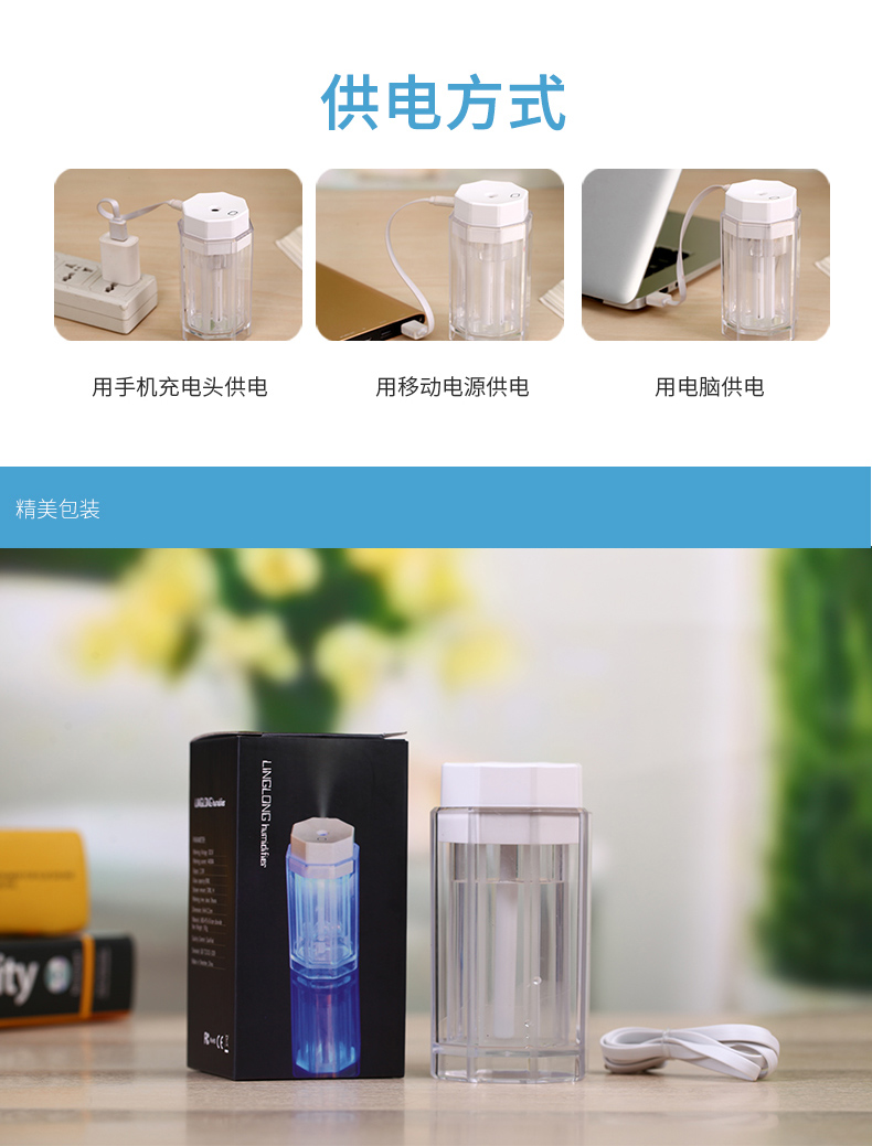 七彩玲珑车载加湿器空气汽车净化器喷雾活性炭车内负离子消除静电