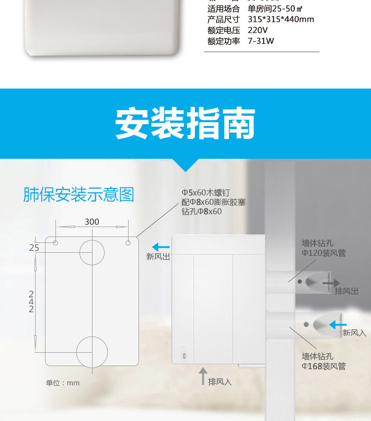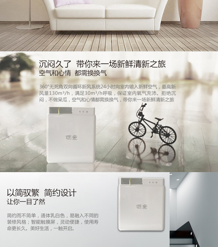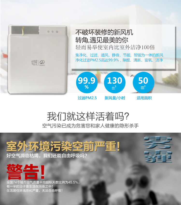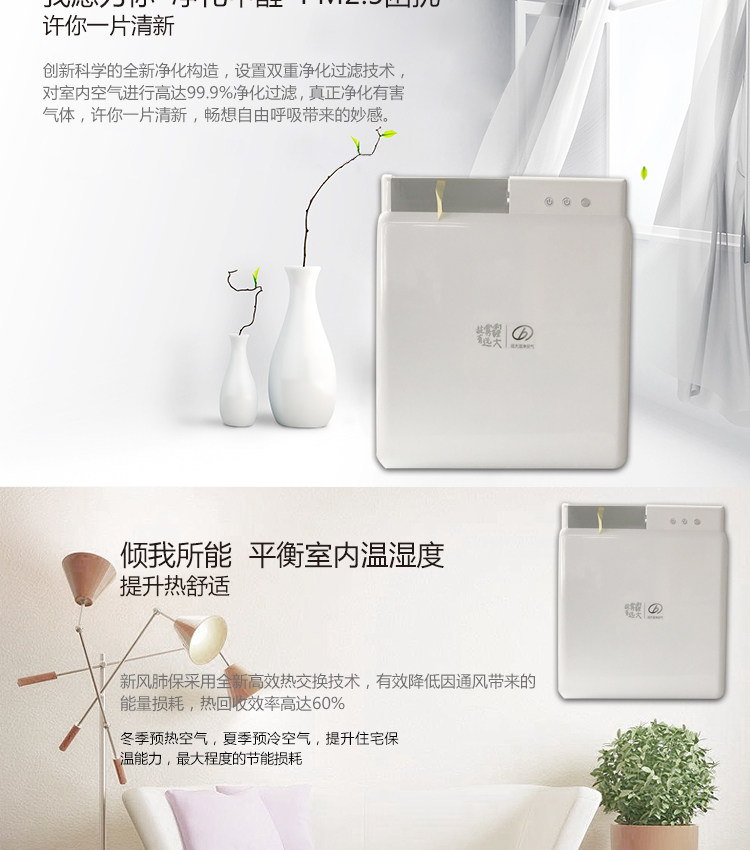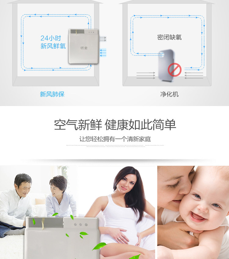 新款远大新风肺保家用空气净化器壁挂新风机除烟尘甲醛防雾霾神器