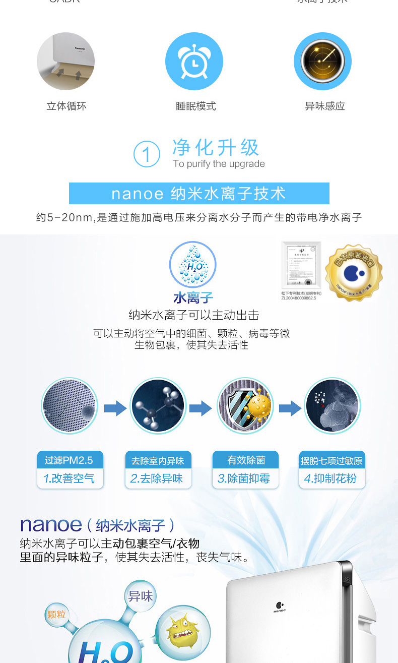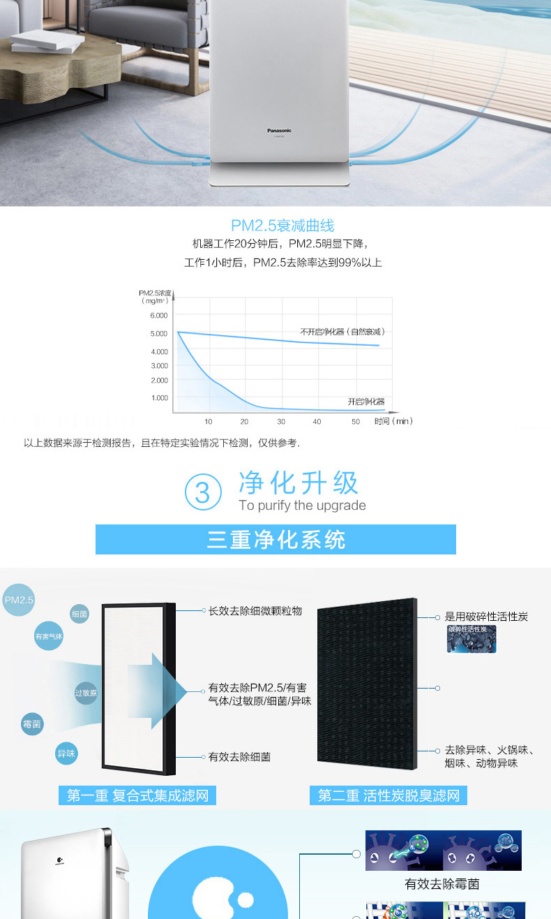 早就想买一台空气净化器了,因为我那台丰田第八代凯美瑞车上的配空气净化器也是松下的,觉得很好,因此就选择了松下,经过试用两晚觉得效果不错,刚开机是红色提示灯,经过一晚的净化,早上已经变成了蓝色灯,整晚觉得空气很清新舒服,另外客服小延做事认真负责,有问必答,态度很好很有礼貌,给他一个赞!总之松下的技术就是好,全五星好评!