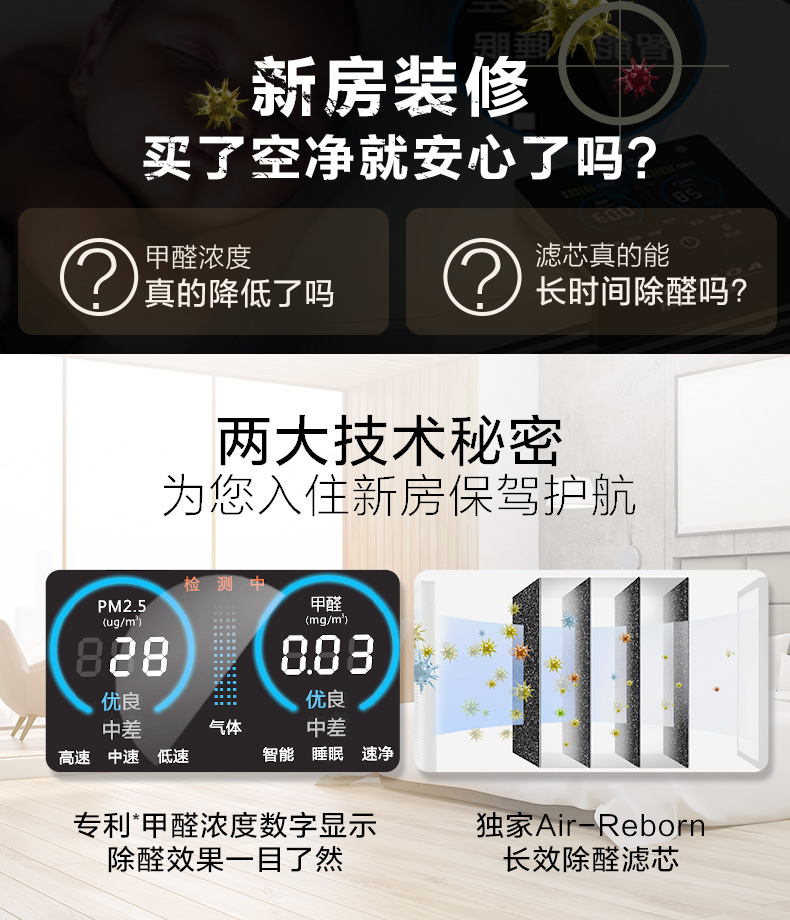 刚开始的时候,甲醛显示0.16,吓人!后来咨询是因为刚打开机器本身没有通风的原因,大概五个小时后就一切正常了。尤其要赞一下的是睡眠模式,完全无声音,一夜安睡。大家可以放心购买!