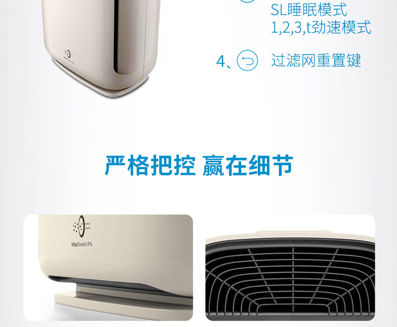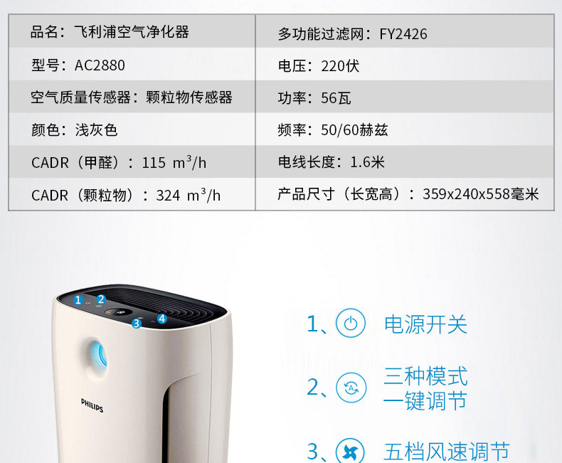 这款净化器的功能真的相当强大,3色的LED灯直接显示空气的质量,开启之后就能检测出是好是坏。现在雾霾少点了,但是空气质量问题依然不能忽视。机器另一个值得夸赞的地方就是静音非常好,在儿童房宝宝整夜也不会被吵醒。无论是哪个空间,都可以轻松来操作3个模式自由选择,我觉得这个钱花的是值得的。一台好的净化器真的能带来清新的感觉,现在没有都开一会,睡觉也舒服多啦。大品牌值得信赖,期待新的产品哦。