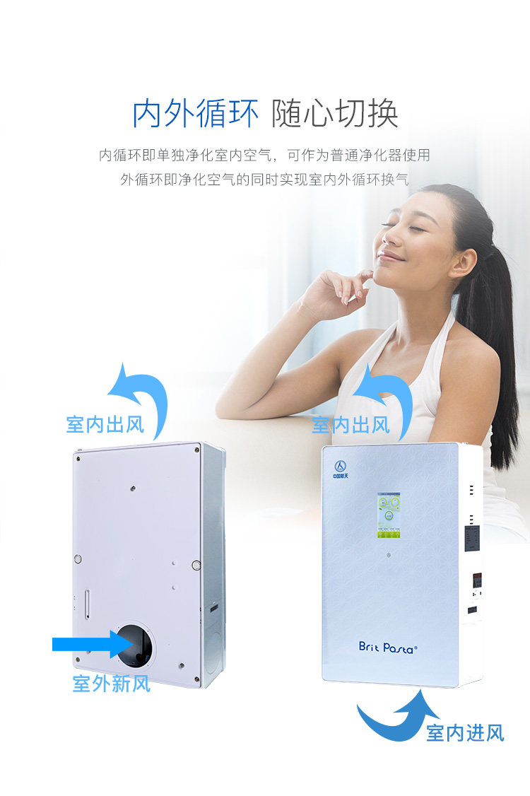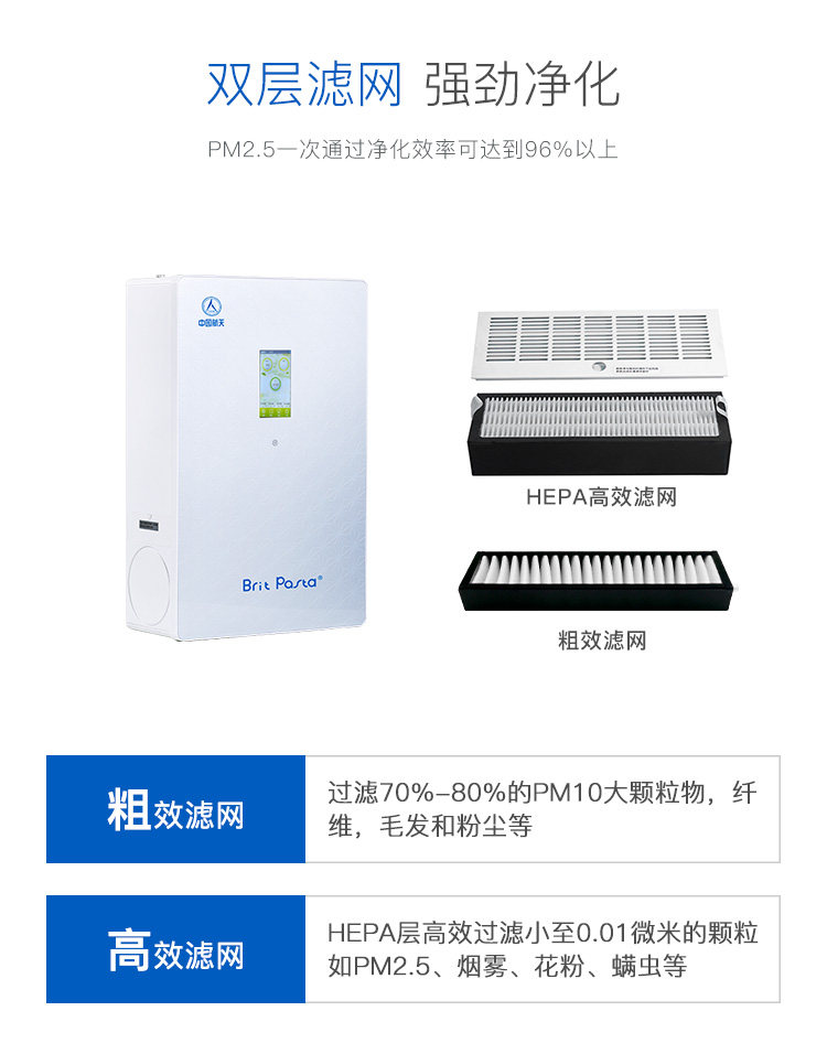 brit pasta小壁挂新风机家用静音空气净化器甲醛雾霾pm2.5