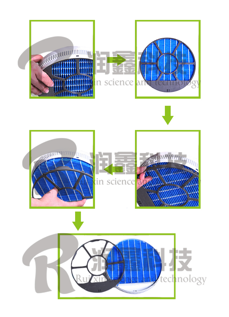 加湿滤网怎么从框里取出来?看完下列分解图, 相信您会很轻松的取出,安装的。