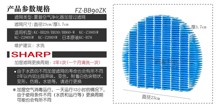 适用机型:KC-Z200SW KC-Z280SW KC-Z380SW KC-BB20-W KC-BB30-W KC-BB60-W KC-CD20-W KC-CD30-W KC-CD60-W/N KC-BD20-S KC-BD30-S KC-BD60-S KC-WE20/ KC-WE30/1/W KC-WE60/1/W 新KC-Z380SW机型KJF380ZA 日本型号为FZ-Y80MF,适应机型:KC-A70/50/40,KC-B70/50/40,KC-D70/50/40,KC-E70/50/40,KI-BX50,KI-DX50,KC-Z85/65,KC-Y45 包装:原厂纸盒