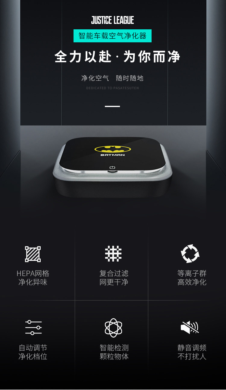 [正义联盟官方车品车用氧吧,空气净化器]汽车车载空气净化器usb车用消除甲醛月销量3件仅售25元
