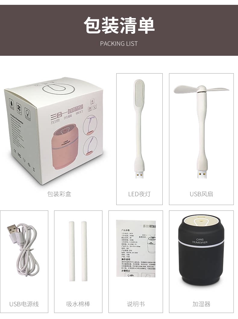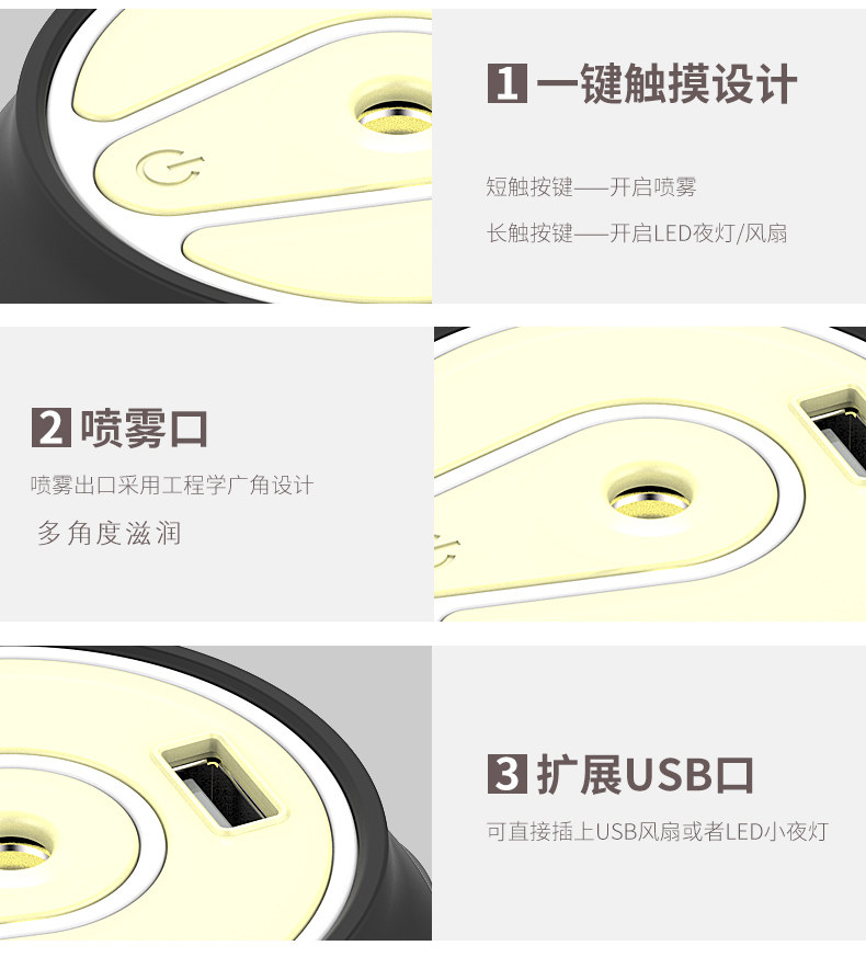 这款非常好 价格便宜造型也特别可爱 大小正好 喷雾的声音不大 还有小夜灯和风扇 普通安卓手机数据线就能用 出门带手机充电器了的话就能带它了很方便