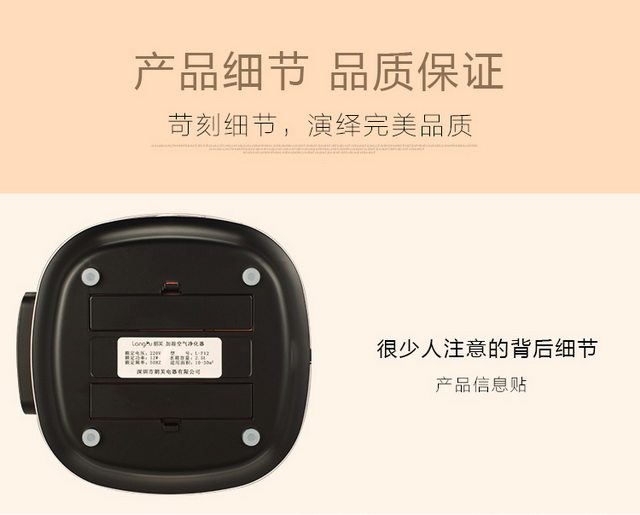 • 空气净化器风量:50 立方米/小时