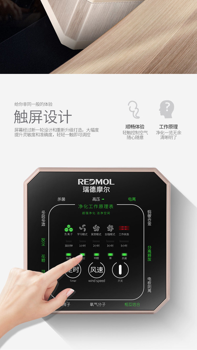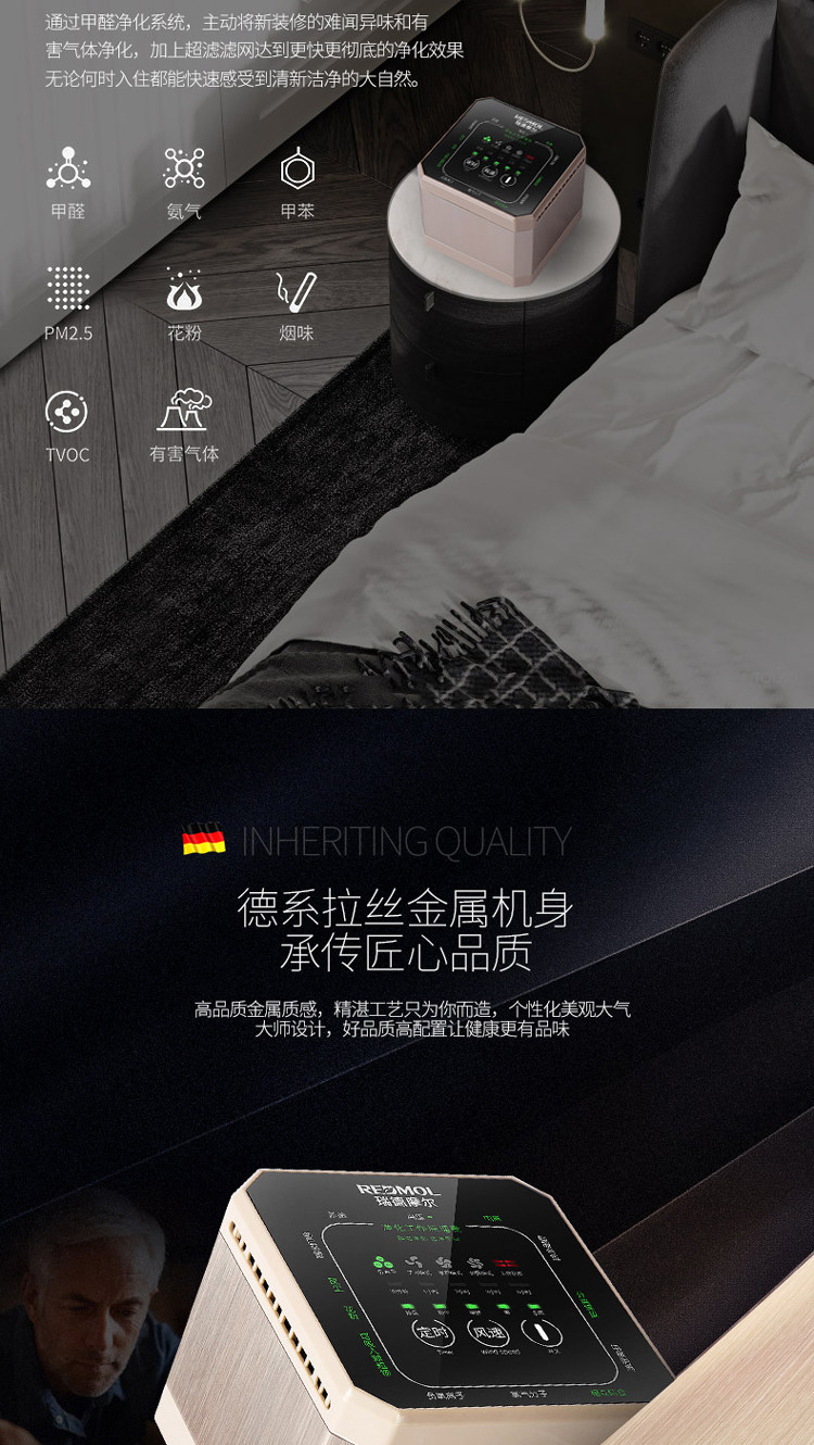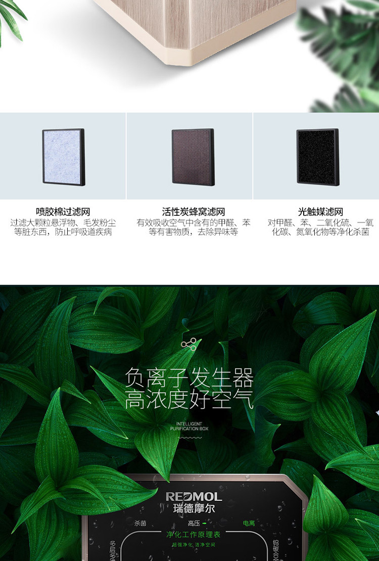 REDMOL桌面空气净化器家用办公室小型卧室去甲醛新房房间净化机