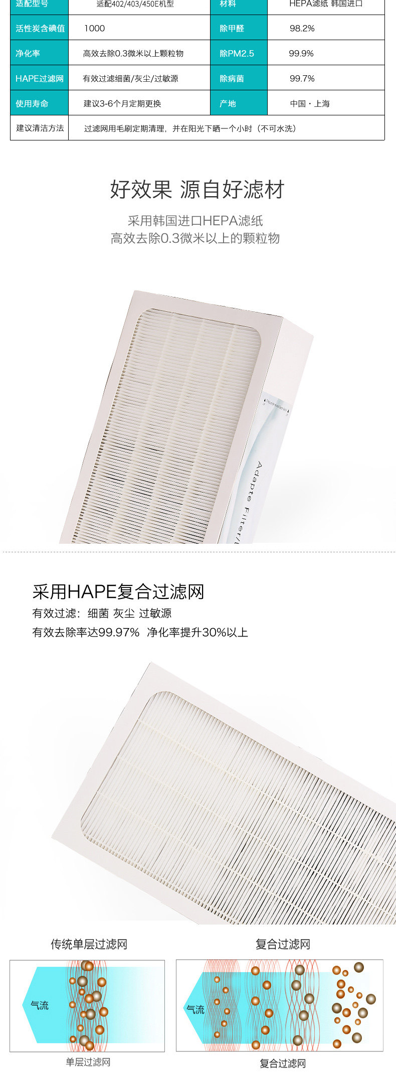 适配布鲁雅尔blueair空气净化器402/403/410B/450E机型复合过滤网