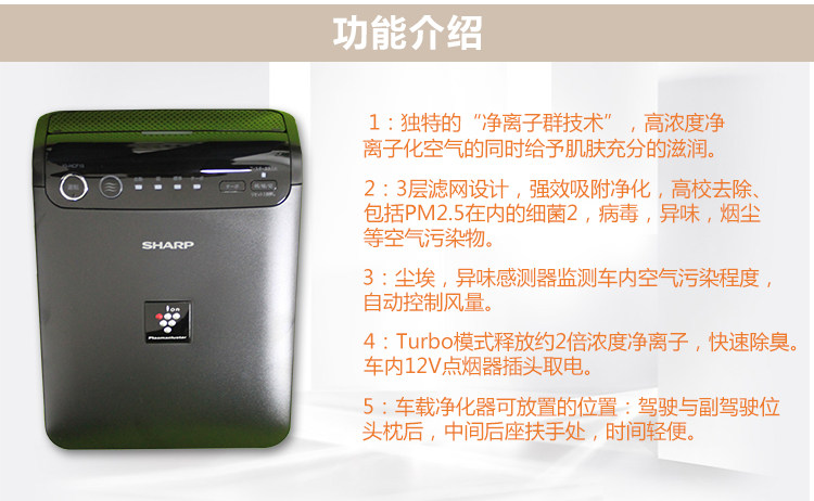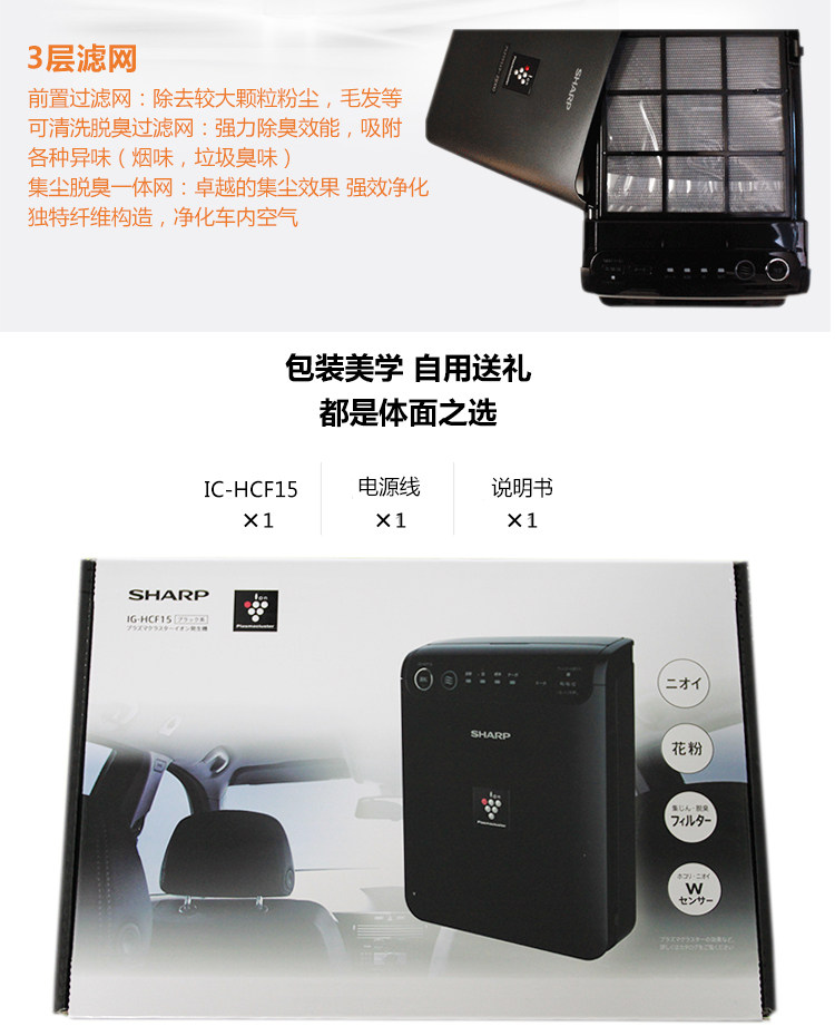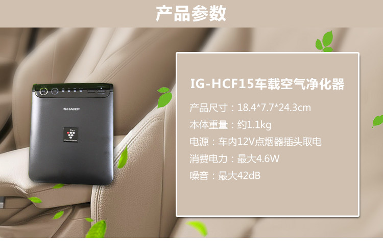 现货 日本 SHARP/夏普 IG-HCF15 车用车载空气净化器 除PM2.5甲醛