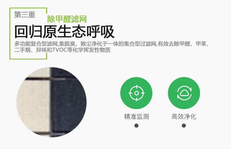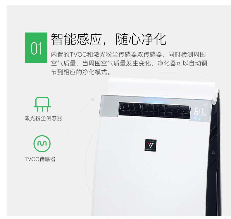 6:增加自动清洁功能,前置滤网自动清洁,还有快速气流循环功能,可以长时间保持净化器99%性能。