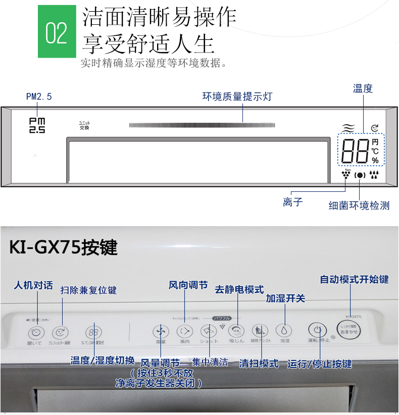 【新款EX系列,提升对PM2.5的感应消除能力,更方便清洁,自动睡眠模式,滤网性能的提升】,BX2012比AX多了几项功能,并且性能也更好。 KI-DX 为13年新款,添加了除静电,快速吸尘,新花粉模式,梅雨模式,状态报告功能,留守定时。