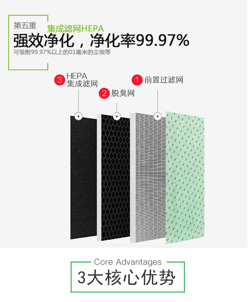 4:搭载有“静电HEPA滤网”以及“除臭滤网”,分别对应颗粒以及异味。此外“前置灰尘滤网”的网筛密度为之前的5倍