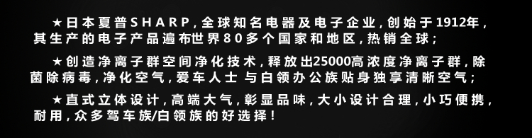 日本夏普车载空气净化器负离子除甲醛烟味异味杀菌净化房间办公室