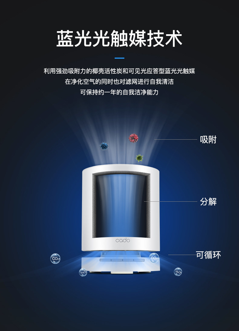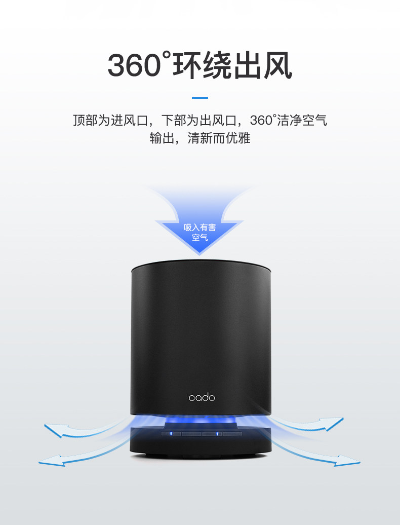 日本cado智能AP-C120GA空气净化器小型氧吧除甲醛PM2.5杀菌室内除