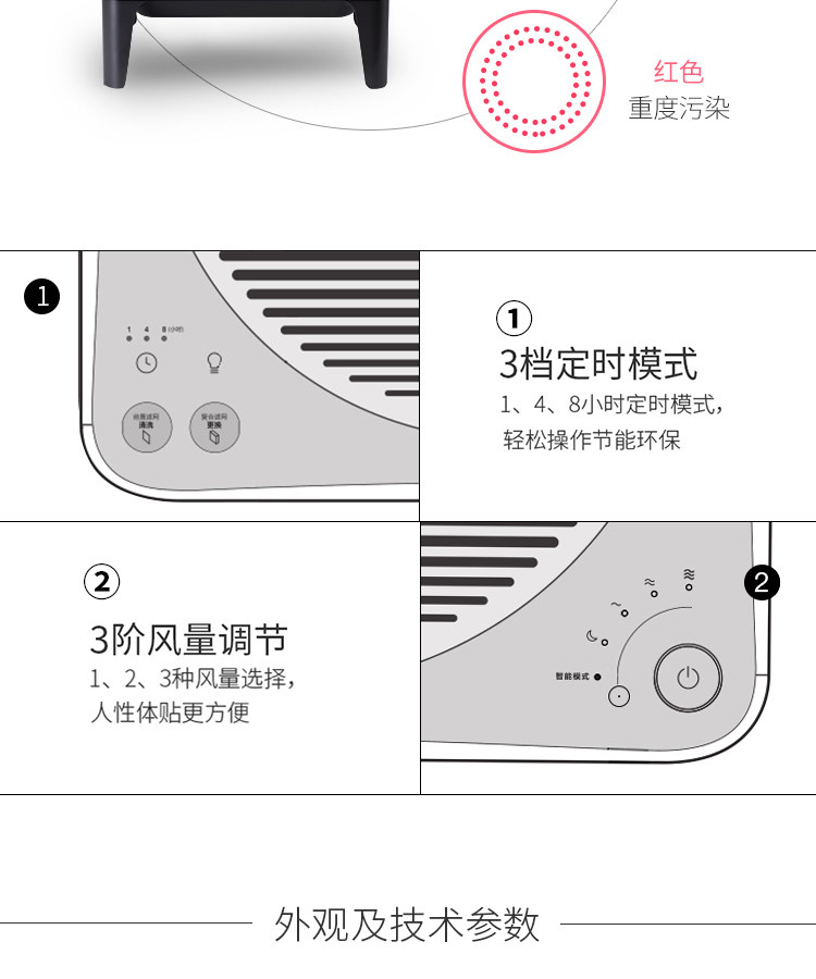 买这款是因为美国亚马逊上评价高,很多人推荐。 目前为止已经用了一个月,整体很不错。 外观上,高度比膝盖高一些,不会占太多地方。两侧有凹进去的地方,挪动很方便。 操作简单,有定时功能,滤网要更换的时候也有指示灯提醒。晚上休息的时候可以把前面的指示灯关掉。机器运转有几个档位可以选,比如空气差的时候可以调到最高档。 机器非常灵敏,一扫地或者窗户开一会儿指示灯马上就调到紫色或者红色开始高速运转,空气恢复正常后又会变成蓝色。鼻炎患者的福音,哈哈哈 这家店的售后也负责,处理问题很及时。 总之推荐!
