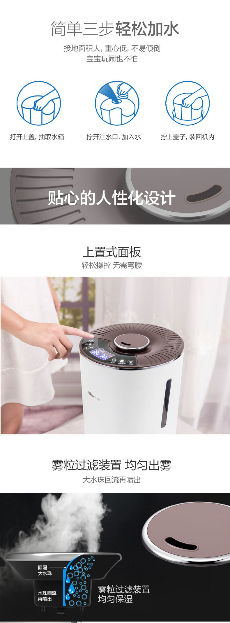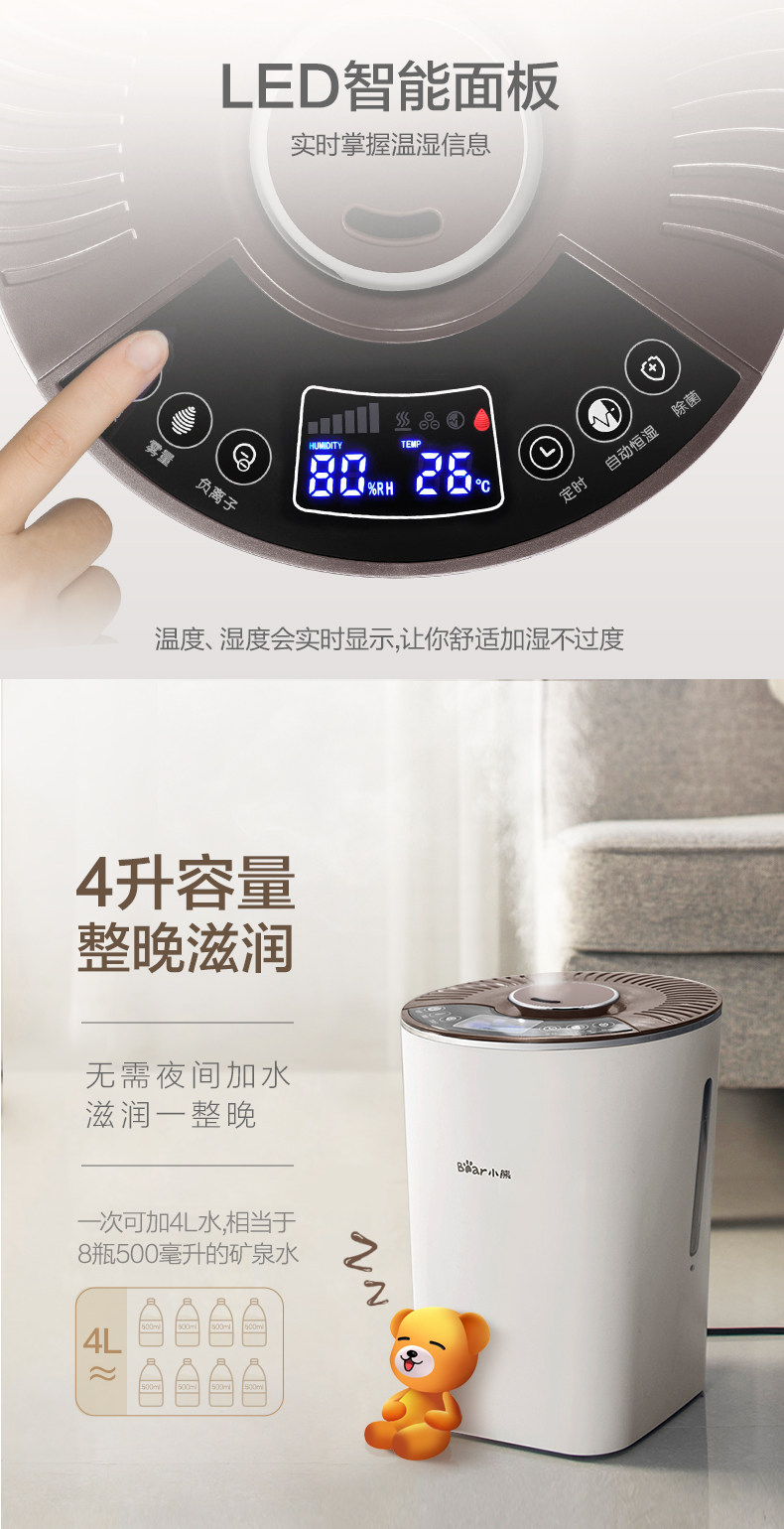 [小熊慕齐专卖店加湿器]小熊空气加湿器智能卧室宝宝自动恒湿杀月销量1件仅售399元