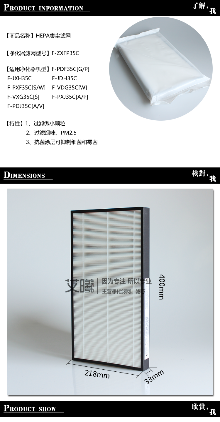 【艾曦滤网型号】集尘HEPA滤网F-ZXFP35C