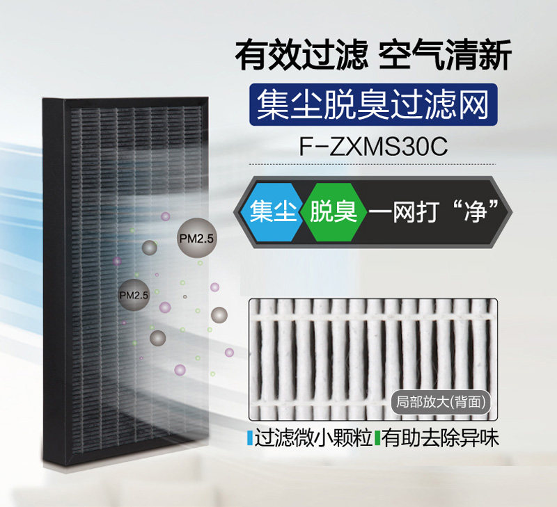 松下空气净化器原装过滤网F-ZXMS30C复合过滤网。