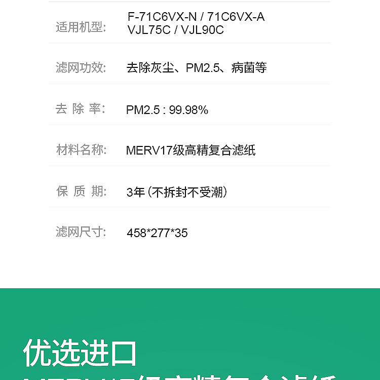 • 货号:松下P70C HEPA网