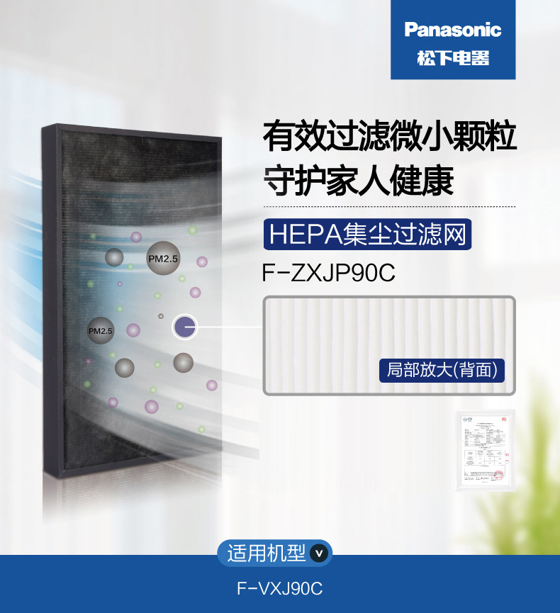 松下空气净化器原装过滤网F-ZXJP90C集尘过滤网。